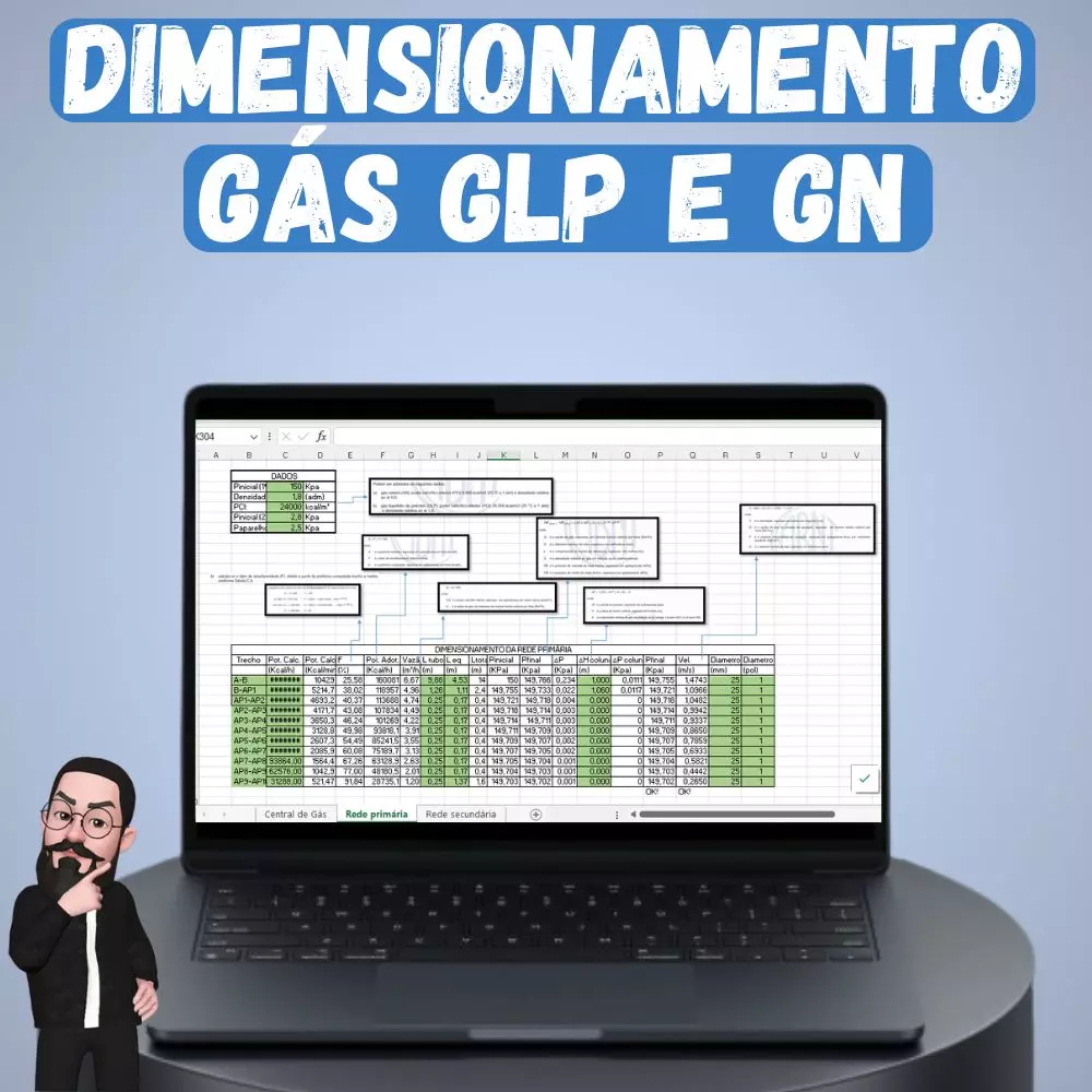 Otimize seus projetos de instalações de gás com a Planilha de Dimensionamento da Rede de Gás GLP e GN, a ferramenta definitiva para engenheiros, arquitetos e projetistas. Este material exclusivo, derivado do nosso Curso de Projeto de Rede de Gás GLP e GN gratuito no YouTube, oferece cálculos precisos e detalhados para garantir a segurança e eficiência das suas redes de gás. Totalmente embasada na ABNT NBR 15526:2016 e nas Instruções Técnicas dos Corpos de Bombeiros do Brasil, ela é indispensável para profissionais que buscam excelência.
